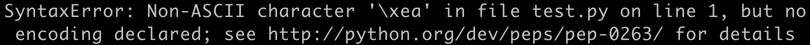 SyntaxError: Non-ASCII character '\xea' in file test.py on line 1, but no encoding declared; see http://python.org/dev/peps/pep-0263/ for details