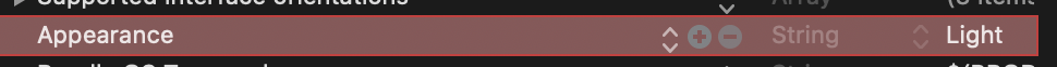 Add row -> UIUserInterfaceStyle -> 값을 Light 또는 Dark로 설정